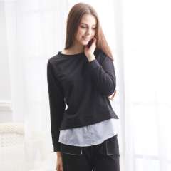 秋冬新款纯棉莱卡长袖圆领简约休闲宽松大码可外穿家居服睡衣女士