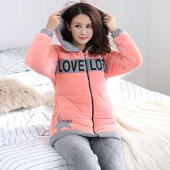 新冬季韩版少女士睡衣加厚贝贝绒夹棉带帽可爱家居服套装厂家直销