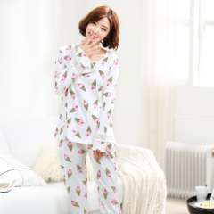 韩版女士休闲居家长袖纯棉睡衣卡通印花可爱家居服长裤睡衣女
