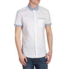 男士短袖对比衣领衬衫,100%棉制成