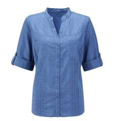 女式上衣/衬衫/开V领休闲女式衬衫,采用100%纯棉格纹布制成