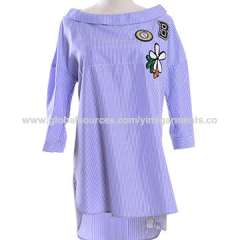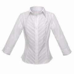 女士白色条纹3/4袖衬衫/休闲衬衫,由100%棉,制衣领