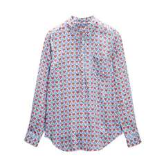 女士印花棉上衣/休闲衬衫,经典款,长袖,领领