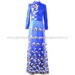 2016最新款设计长袖蕾丝绣花女式长裙