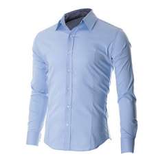 男士蓝色长袖休闲衬衫,标志为您的要求