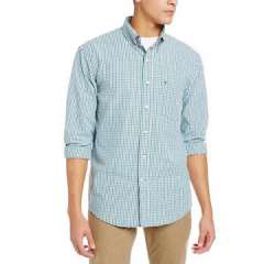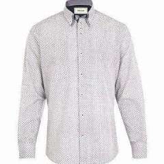 男士印花棉质按扣休闲衬衫,双对比领,长袖