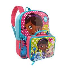 粉红色的孩子doc mcstuffins书包与午餐盒,16英寸,由聚酯制成