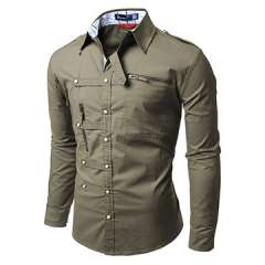 男士长袖休闲衬衫拉链点,棉和聚酯制成