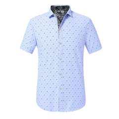 男士时尚蓝色100%棉质印花长袖衬衫