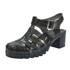 有各种各样的颜色的妇女的闪烁室外果冻鞋子