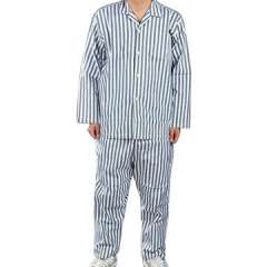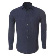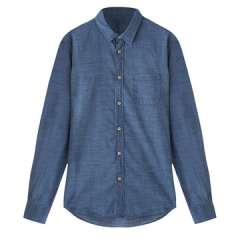 100%棉海军长袖按钮通过细纹条衬衫双领