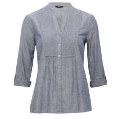 女式休闲长袖女式衬衫,100%棉,Pintuck细节,V领和领子站