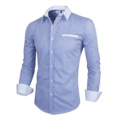 男士时尚100%棉条纹商务衬衫,长袖