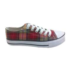 橡胶外底OEM多彩定制格子简单运动方便硫化帆布鞋