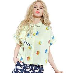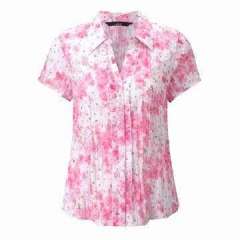 女士休闲衬衫/上衣/衬衫,55/45棉/多色织物,褶边细节,小领
