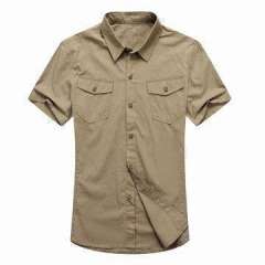 男士短袖休闲衬衫,100%纯棉,开襟领,成衣洗