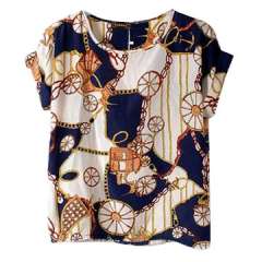 女士鸟心几何打印短袖雪纺顶部T恤衫衬衫