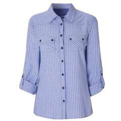 女式休闲衬衫,100%棉条,胸前的口袋,卷起的袖子