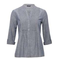 女式休闲衬衫,100%棉,针褶细节,V领与领站