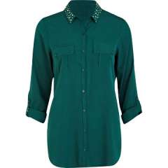 女式休闲衬衫,螺柱领,由100%聚酯制成