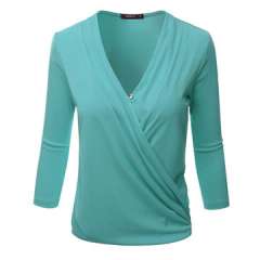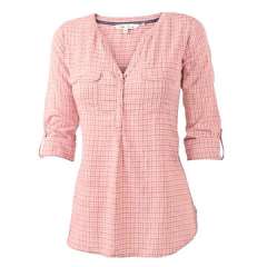 女士休闲衬衫,棉质上衣,轻质格纹棉布,3/4袖,立领