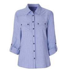 女式休闲衬衫,100%棉条纹,胸前的口袋,卷起袖子