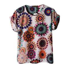 女士圆领几何印花短袖雪纺衫T恤衫衬衫