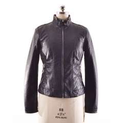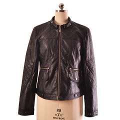Women's Faux Leather Zipper, Front Bike Long Sleeve Jacket, Nice Texture