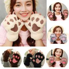 Soft Warm Women Paw Glove Fingerless Fluffy Bear Cat Plush Paw