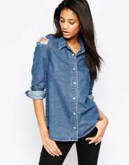 休闲时尚柔软牛仔女士衬衫服装