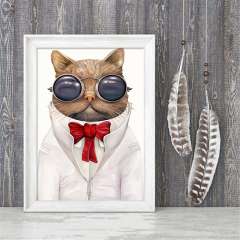Modern Abstract Huge Wall Art Oil Painting On Canvas Glasses Cat Unframed Decor