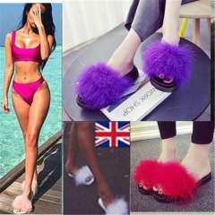 Women Feather Sliders Slippers Feather Fluffy Marabou Mules Open Toe Sandals