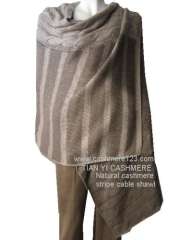 100% Cashmere Chunky Cable Stripes Knit Shawl