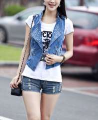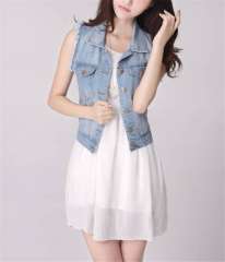 Blue Denim Vest Patchwork Lace Back with Bowknot for Lady