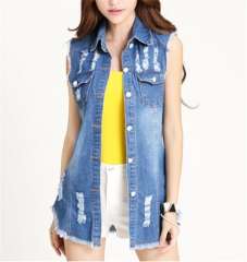 Summer Sleeveless Crochet Casual Denim Shirt with Comb