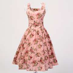 Retro Vintage Floral Linen Fabric Boho Style Sleeveless Ladies Dress