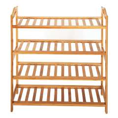 Concise 12-Batten 4 Tiers Bamboo Shoe Rack Wood