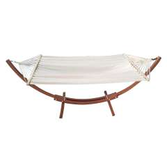 Portable Pine Canvas Hammock Set Yellow Amber & White For 2 Persons With Stand