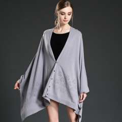 与灰色的按钮的羊毛披肩