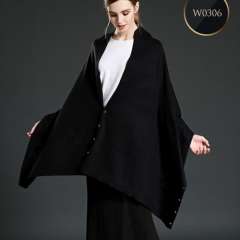 黑色与按钮的羊毛围巾披肩