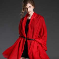 女性红色斜纹布羊毛围巾披肩