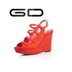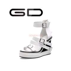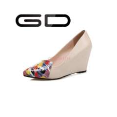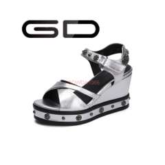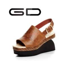 Gdshoe夏季鞋美丽的高跟皮革坡跟鞋