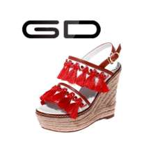 Gdshoe皮革夏季凉鞋流苏坡跟鞋