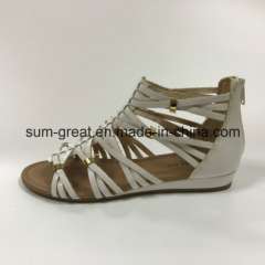 White Women Sandals with PU Upper Lady Casual Shoes with Good Quality