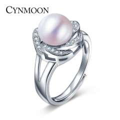 CYNMOON Natural Freshwater Pearl Wedding Rings for Women Pearl Rings