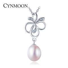CYNMOON flower shaped silver freshwater pearl pendant necklace jewelry