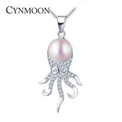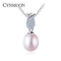 CYNMOON natural freshwater pearl pendant necklace silver jewelry for women
