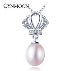 CYNMOON Women Trendy Freshwater Pearl Pendant Jewelry Crown Design Jewelry