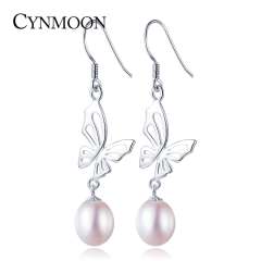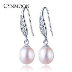 CYNMOON women trendy natural freshwater pearl earrings sterling silver jewelry