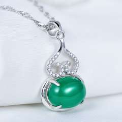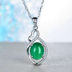 925 silver necklace female | natural ice kind green chalcedony pendant Korean fashion chalcedony necklace